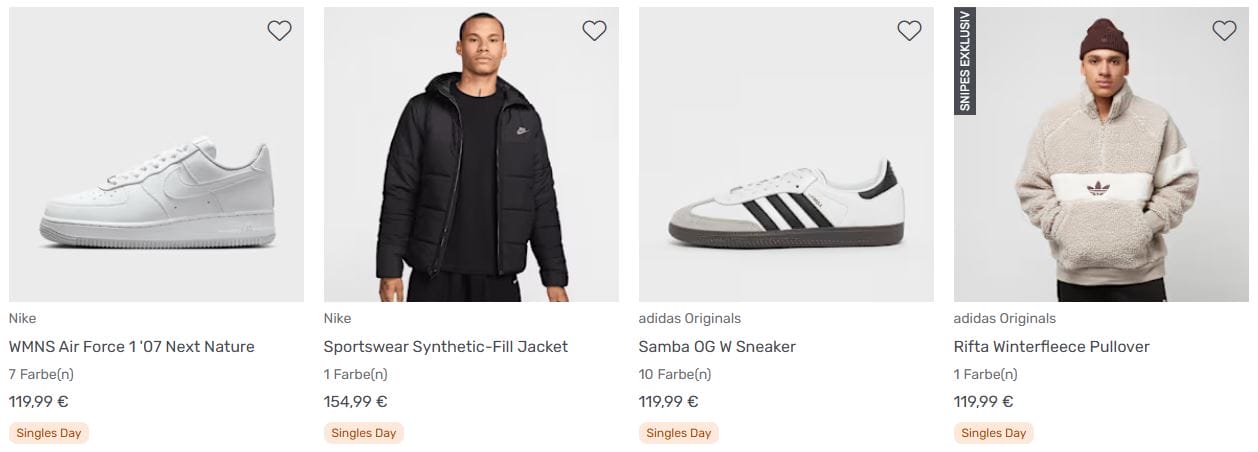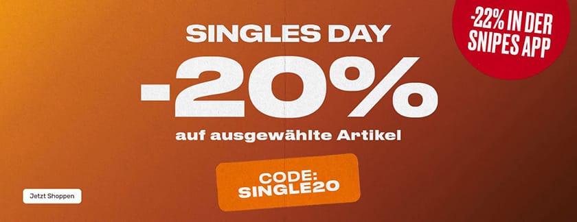 Snipes Single Day mit 20% Extra-Rabatt auf über 2.800 ausgewählte Artikel