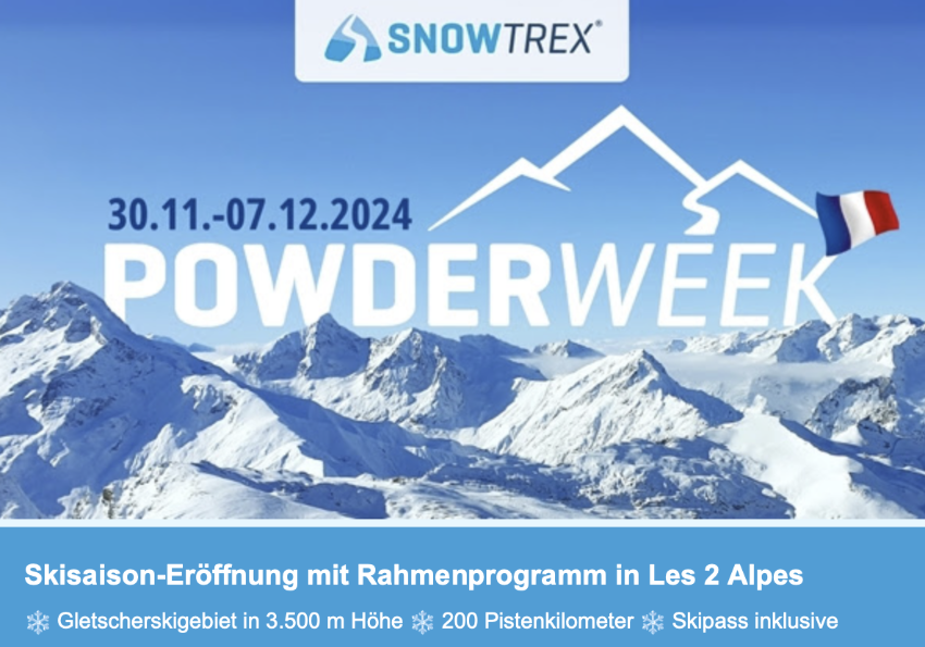 Tipp: Dieser Deal wird präsentiert von unserer Partnerseite ReiseHugo.de – dem Reiseschnäppchenblog – dort findest Du täglich die besten Reiseangebote und Urlaubs-Deals. Hier gelangst Du zum ausführlichen Beitrag: SnowTrex: Skisaison-Eröffnung mit Rahmenprogramm in Les 2 Alpes