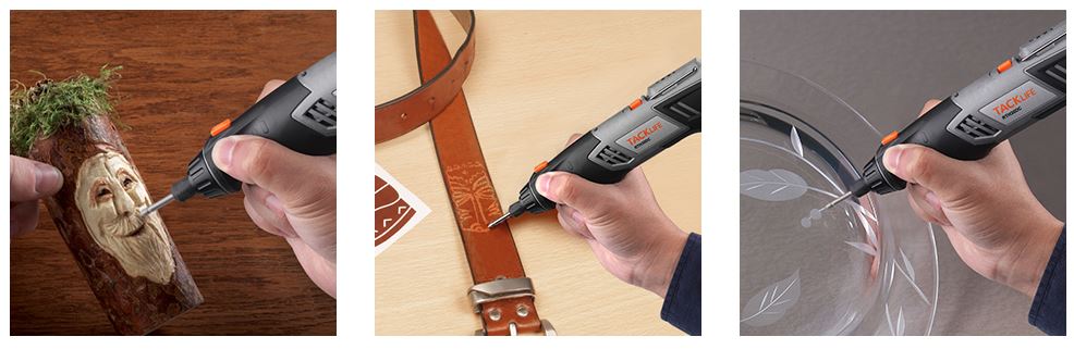 Durch die verschiedenen Zubehörteile kann man mit dem Werkzeug beispielsweise Schleifen, Schneiden, Gravieren und Polieren.