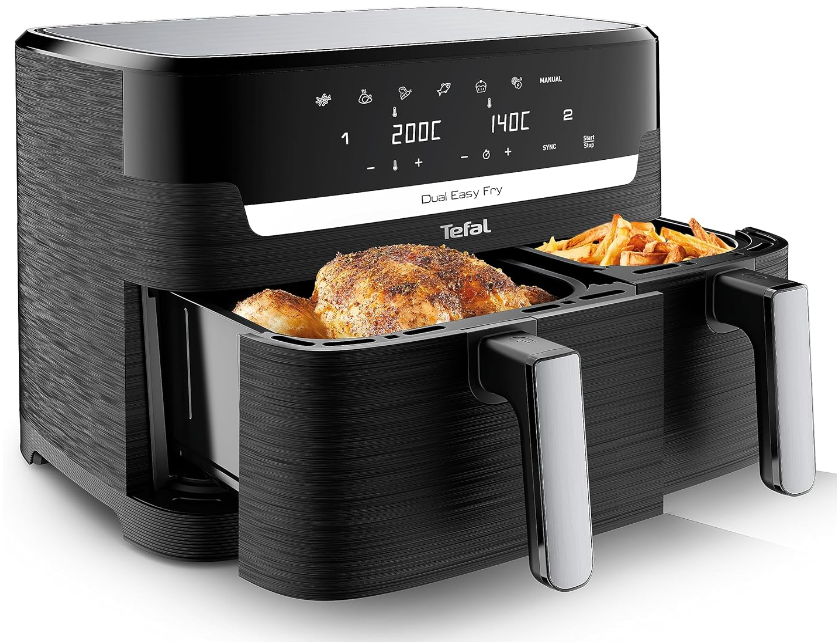 Tefal EY9018 Dual Easy Fry Doppelkammer-Heißluftfritteuse (5,2 + 3,1 L) für 127,09€
