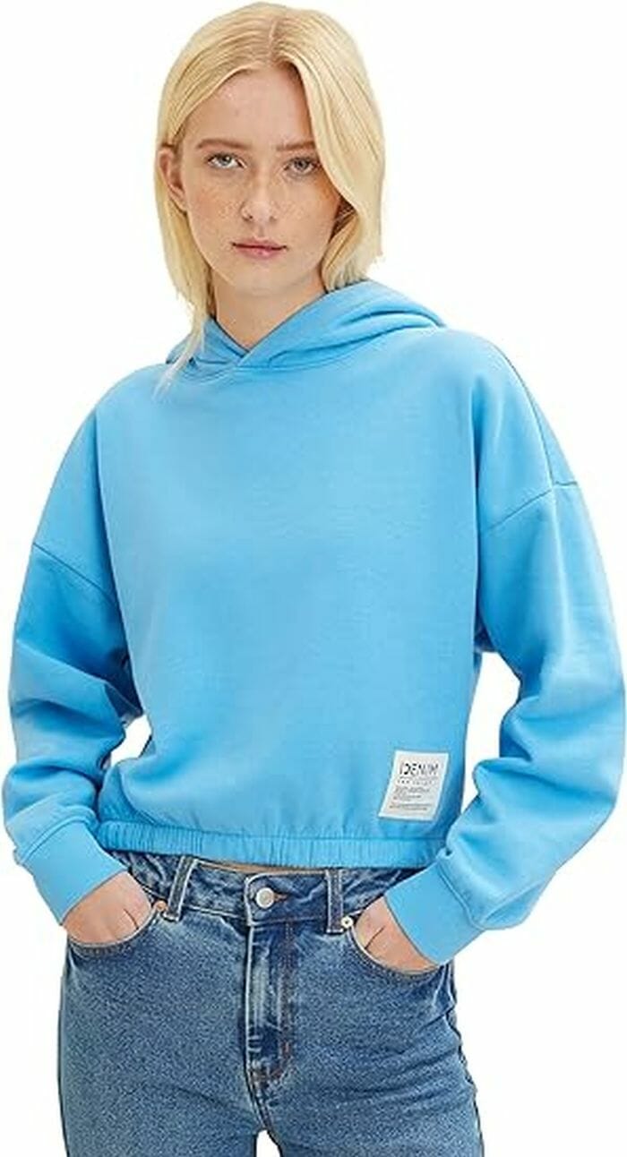 Im Preisvergleich gibt es das TOM TAILOR Denim Damen Cropped Hoodie Sweatshirt sonst ab 24,99€ – ihr spart also 10,09€.