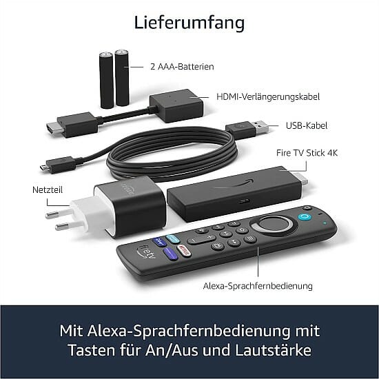 - Alexa-Sprachfernbedienung – Suchen, starten und steuern Sie Inhalte mit Ihrer Stimme. Mit den voreingestellten Tasten rufen Sie schnell Ihre bevorzugten Apps auf. Mit nur einer Fernbedienung schalten Sie Ihre Geräte an und aus und stellen die Lautstärke ein.