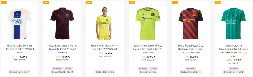 Trikots der letzten Saison für um die 19,99€ im Fantrikot Sale