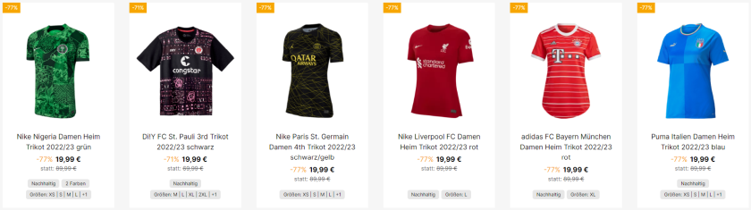 Zur Auswahl stehen euch auf der Aktionsseite viele verschiedene Trikots von 22/23 für Damen, Herren und Kinder.