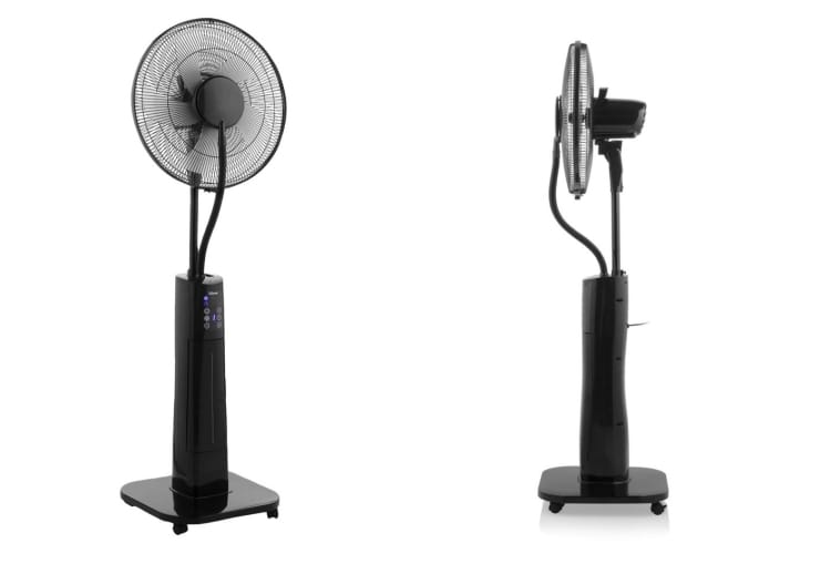 Der Ventilator verfügt über einen 2L Wassertank und sorgt für die Vernebelung des Wassers für einen kühlenden Luftstrom. Die Steuerung kann direkt am Ventilator oder über die mitgelieferte Fernbedienung vorgenommen werden.