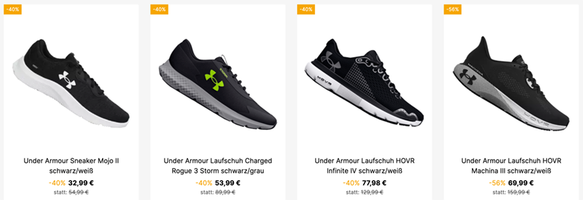 Under Armour Schuhe Sale bei Geomix mit mindestens 35% Rabatt + 5€ Extra-Rabatt
