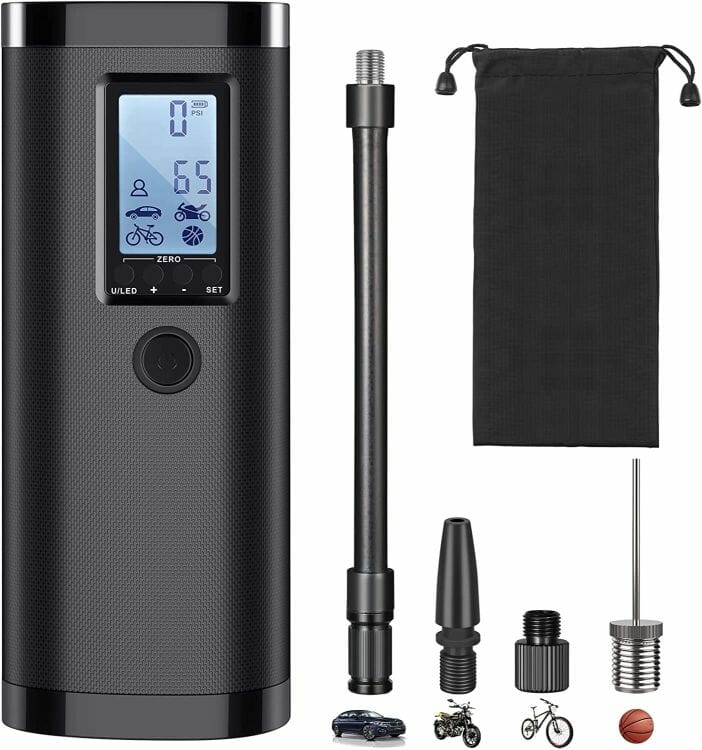 - 4 verschiedene Aufsätze für Auto-, Motorrad- und Fahrradreifen sowie Bälle