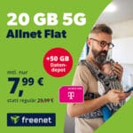 Verlängert: freenet Telekom 5G Allnet Flat mit 20 GB Daten für nur mtl. 7,99€ + 50 GB Datendepot!