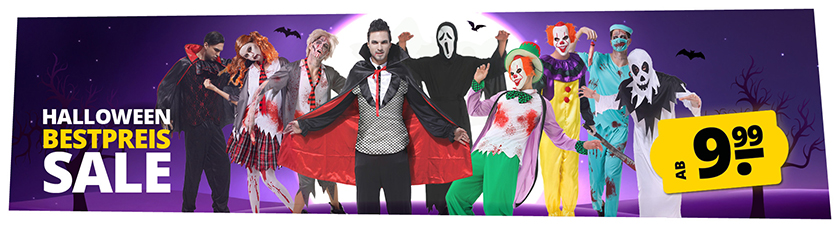 Zur Auswahl stehen euch auf der Aktionsseite eine große Anzahl an verschiedenen Kostümen. Mit von der Partie sind beispielsweise Vampir-, Clown-, Krankenschwester- oder Geist-Kostüme. Ein Blick auf die Aktionsseite lohnt also für all diejenigen, die für die demnächst anstehenden Veranstaltungen noch das passende Outfit suchen.