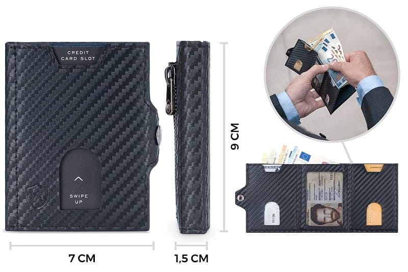 - 1 vollwertiges Scheinfach und 1 Mini Münzfach auf der Rückseite (2-3 Münzen)