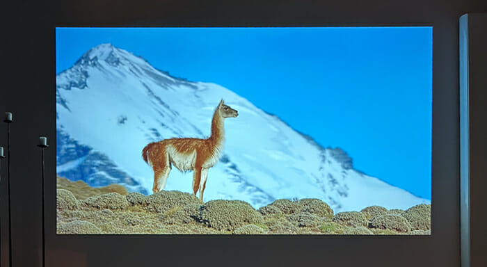 Der Wanbo Mozart 1 kommt mit einer Helligkeit von 900 ANSI Lumen daher und stellt Inhalte je nach Abstand zur Wand auf einer Diagonalen von bis zu 120 Zoll dar. Die Helligkeit der LEDs (mit einer Lebensdauer von 20.000 Stunden) liefert in dunkler Umgebung ein gutes bis sehr gutes Bild, reicht jedoch tagsüber bei direktem Sonnenlicht oder zu viel Beleuchtung nicht für ein kräftiges Bild. In meinem abendlichen Test an einer freien Wand stellt dies jedoch kein Problem dar, weshalb ich mit der Helligkeit für diesen Einsatzzweck sehr zufrieden bin.