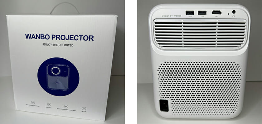 Wie bereits eingangs erwähnt, hat Wanbo beim Mozart 1 den Fokus nicht nur auf eine optisch ansprechende Benutzeroberfläche und gute Bildqualität gelegt, sondern auch an der Klangqualität geschraubt. Das zeigt sich bereits optisch durch einen großen Lautsprecher mit „Wanbo & Acoustics“ Branding auf der linken Seite des Geräts.