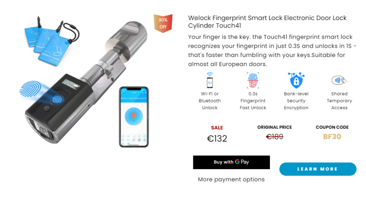 Beim Hersteller Welock gibt es natürlich auch wieder einen Black Friday Sale mit 30% Rabatt auf die verschiedenen, smarte Türschlösser der Marke Welock.
